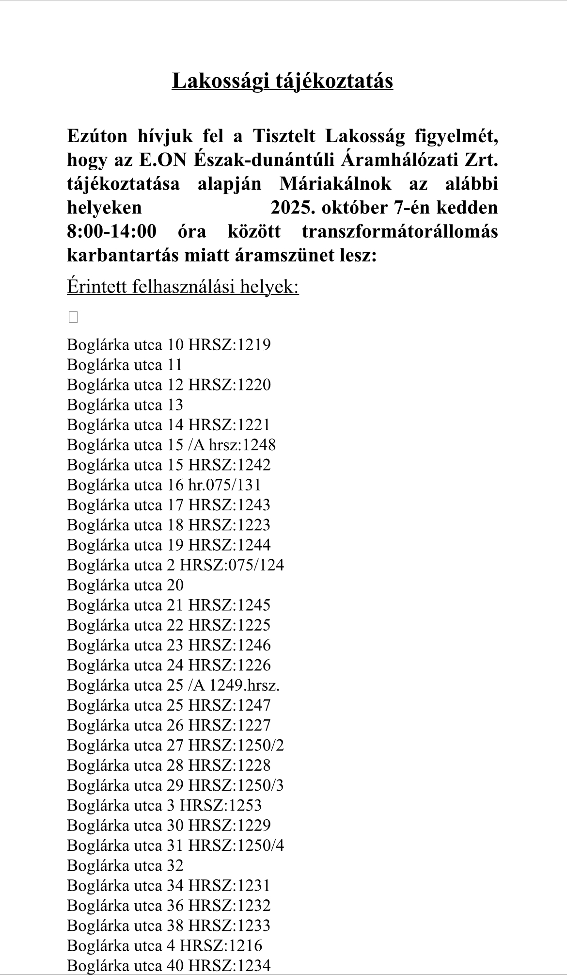 Áramszünet 2025.10.07.